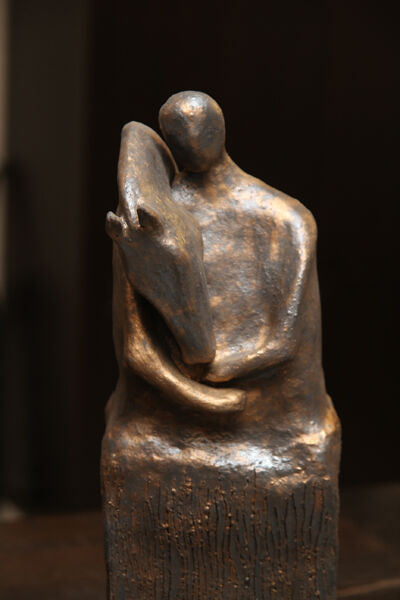 Deze paardenvriend(in) in antraciet met brons verhuisde naar een Overpeltse woonkamer.