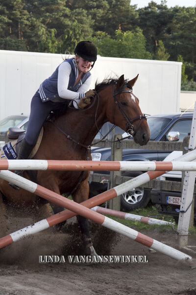 Fijn dat jij hier op mijn blog terecht komt. Wat je hier voornamelijk zal vinden zijn mijn twee passie's: PAARDEN en FOTOGRAFIE ( en wel in deze volgorde ). Dat hoort dan ook zo als grootste supporter van onze zonen die de ponyclub onlangs zijn ontgroeid. En dan heb je ook nog de fotografie ... Lang, héél lang geleden (ik schat 23 jaar) gestart met een practica B100 foto's te maken zomaar voor de lol. En jaren later, dan nog veel meer foto's gaan maken van onze zoontjes als gewillige en fotogenieke slachtoffers. Zij vonden dat geweldig, en ik ook natuurlijk. Daarna stillekes overgeschakeld naar het fotograferen van communiekantjes van familie en enkele vrienden om vervolgens terecht te komen bij jumpingfoto's (van weeral diezelfde zonen ) op LRV wedstrijden. Momenteel werk ik digitaal, met een canon 30D en ben ik na 4 cursussen een fervent photoshopper. Ook ben ik gretig sparend om -die bijna onbetaalbare- witte telelens te kunnen aanschaffen vooralleer de out-door wedstrijden weer van start gaan.