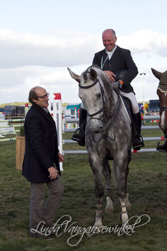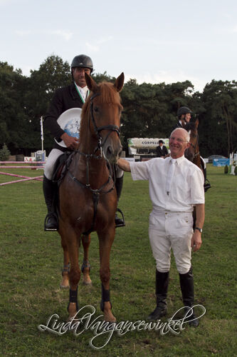 Eigenaar - schoonvader zal er ene mogen geven in de tent. Net door de finish maakte Koen en Duchesse een vreugderondje.