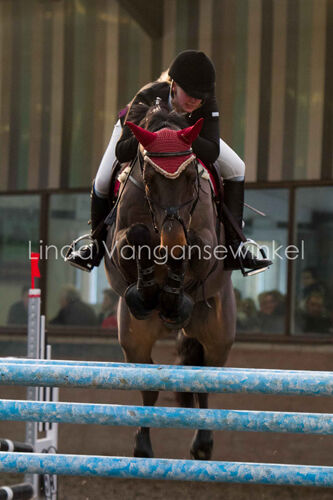 Klasse Beginnelingen, Lennert Korsten reed de beste barrage en kreeg het goud. En klasse Licht werd beide keren gewonnen door Overpelt! De eerste omloop was voor Maité Vanheeswijk en Hey Casper. Omloop 2, hier was Stijn Loos met Rani net iets rapper dan Maite. En dan in Midden. De snelste barrage was voor RV Bree, maar toch ook een klein beetje voor Overpelt want Koen Geerits was de snelste met Farao van stal Kievitsdriessen. Omloop 2 was wel helemaal raak, Giel Theuwis als derde ruiter binnen, en zijn snelle foutloze chrono hield stand tot na de laatste ruiter. Titel 3 voor Overpelt was binnen! En dan klasse Z, in 't eerste parcours was Sus Dirikx (Meldert) met Chopin de beste, Ruben Houben op 3 en brons voor Peter Pinxten. Maar na de nulrit van Kelly Vanhoudt in de tweede ronde voor klasse Zwaar had ik de titel voor in de equitime al klaar: "Overpelt wint viermaal goud op eigen indoor" Ze hield lang stand, tot de voorlaatste starter Zoe Antheunis die tijd aan diggelen reed. Helemaal verdiend kreeg zij goud met Wodan. En het zilver, ... dat was voor Kelly.