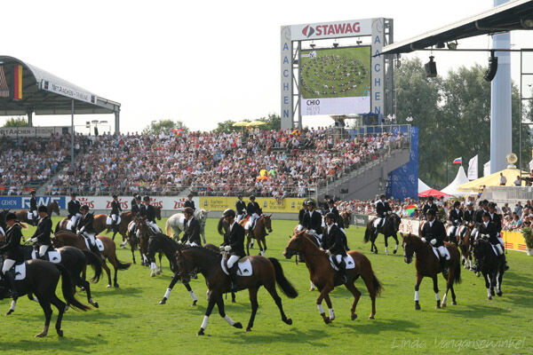 Op de oefening gisteren vroeg Kelly me: Ge gaat toch zo ne top maken van de mooiste momenten? Da is ne moeilijke. De eerste plaats niet, totaal niet, de eerste plaats steekt met kop en schouder boven alle andere uit. De openingsceremonie met Vlaanderen als gastland met de kurkentrekker met onze LRV-ers in een hoofdrol op wereldberoemde jumping Aken editie 2009. Zo'n evenement in dit prille blogleven. Wij waren er, op dat heilige gras. En ik had kiekenvel. Ik zit er nu opnieuw van na te genieten.