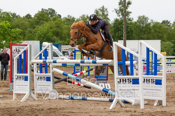 We zijn ook al gewoon dat de prijzenmand er meestal royaal gevuld is. Met als hoofdvogel een sjieke hindernis. Niet zomaar twee staanders en wa balken, ... neenee een deftige aangeklede hindernis!
