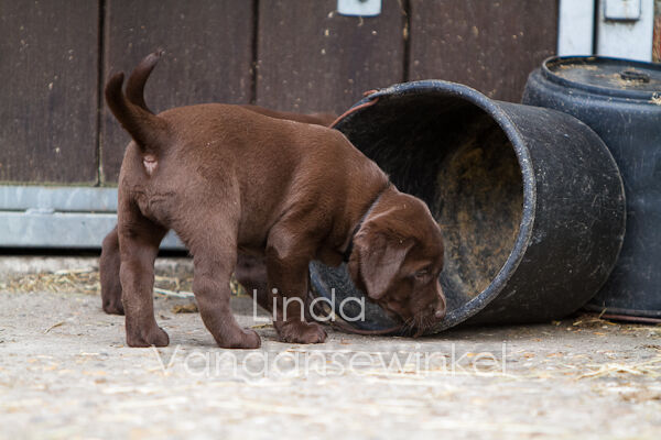 Vandaag werd pup 1 Boris met het blauwe halsbandje opgehaald.