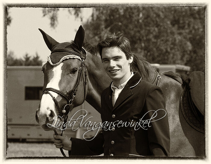 Fijn dat jij hier op mijn blog terecht komt. Wat je hier voornamelijk zal vinden zijn mijn twee passie's: PAARDEN en FOTOGRAFIE ( en wel in deze volgorde ). Dat hoort dan ook zo als grootste supporter van onze zonen die de ponyclub onlangs zijn ontgroeid. En dan heb je ook nog de fotografie ... Lang, héél lang geleden (ik schat 23 jaar) gestart met een practica B100 foto's te maken zomaar voor de lol. En jaren later, dan nog veel meer foto's gaan maken van onze zoontjes als gewillige en fotogenieke slachtoffers. Zij vonden dat geweldig, en ik ook natuurlijk. Daarna stillekes overgeschakeld naar het fotograferen van communiekantjes van familie en enkele vrienden om vervolgens terecht te komen bij jumpingfoto's (van weeral diezelfde zonen ) op LRV wedstrijden. Momenteel werk ik digitaal, met een canon 30D en ben ik na 4 cursussen een fervent photoshopper. Ook ben ik gretig sparend om -die bijna onbetaalbare- witte telelens te kunnen aanschaffen vooralleer de out-door wedstrijden weer van start gaan.