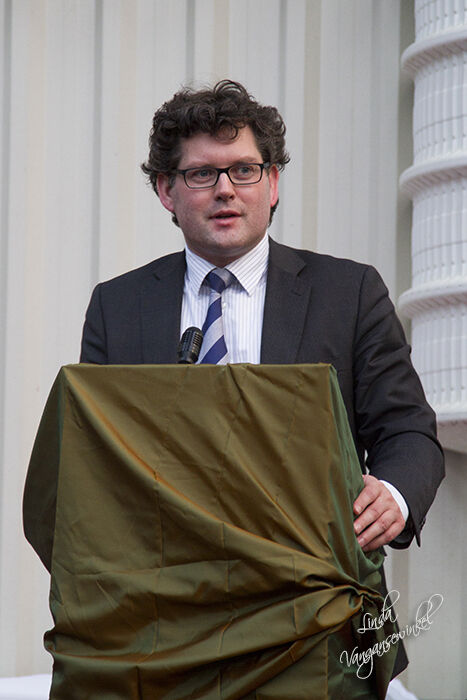 DE taart! Vanaf hier werd mijn toestel overgenomen door Hilde Cox, wij moesten naar een ander feestje en Hilde legde de ontvangst van mijn keramieken achttal vast op de gevoelige plaat. Laat ons hopen dat Toine het mooi vond ;) Had zo graag zijn gezicht gezien bij het overhandigen...
