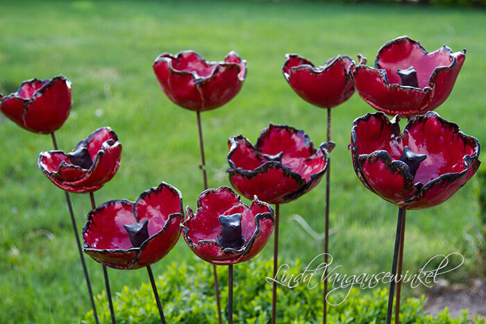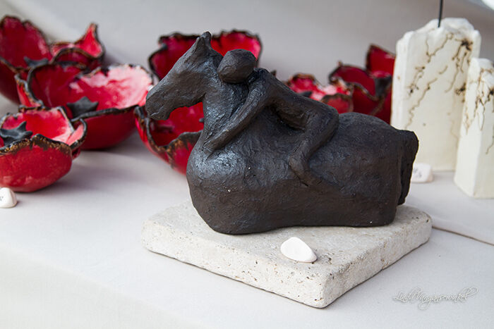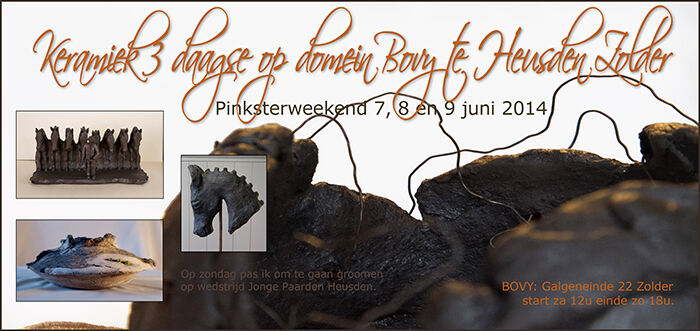 Het Bovy keramiekweekend is weer gepasseerd. Vrij rustig, maar de juiste mensen passeerden toch mijn kraam. Ik mag terugblikken op mijn beste editie, want een jong gezinnetje met een paardenminnende mama en -dochter wisten papa -en dat zelfs op vaderdag- te overhalen om zijne portefuille boven te halen en het duurste stuk uit mijn kraam te kopen. Het rollend paard staat (ligt) nu elders op een kast te rollen. De klaprozen deden het uitstekend en nog verschillende andere stukken veranderden van adres. Tussendoor nog eens snel gaan springen met ons jackske op Jonge Paarden op enkele kilometers van Bovy en ook dat ging super!
