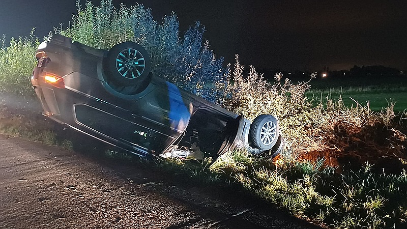 Een bestuurder van een BMW was daar van de weg geraakt en eerst in de gracht terechtgekomen waarna de wagen tegen een elektriciteitspaal boste, die afknakte, om vervolgens door de omheining van de weide even verder in de weide tot stilstand te komen. De bestuurder werd licht gewond overgebracht naar het ziekenhuis.
