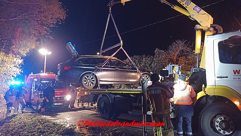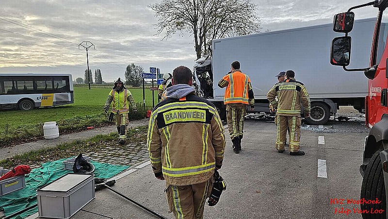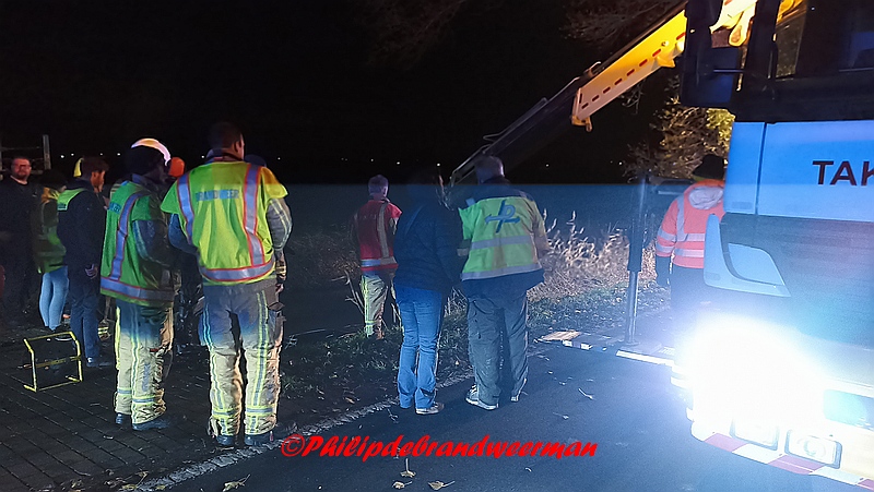 Fluvius kwam ter eveneens ter plaatse om de schade aan elektriciteitskabels te herstellen. Na de takelwerken moest de brandweer het wegdek nog terug proper maken.