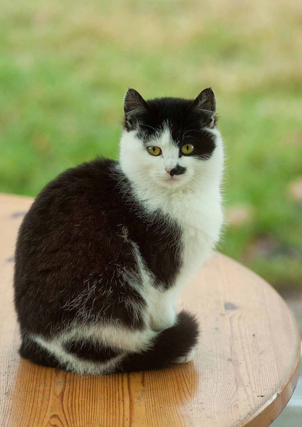 De verkoudheid blijft maar aanslepen en die remt me behoorlijk af wat mijn normale dagelijkse bezigheden betreft. Ik kom nauwelijks de deur uit. En dan maak je het dus mee dat als de fotograaf niet op jacht gaat naar de foto, de foto zich wel komt aandienen voor de fotograaf. Deze poes zat zo maar op de tafel onder de veranda achter ons huis. Ik moest alleen maar de camera nemen, instellen en afdrukken. Zo zie je op deze pagina's ook eens een poes voorbij komen.