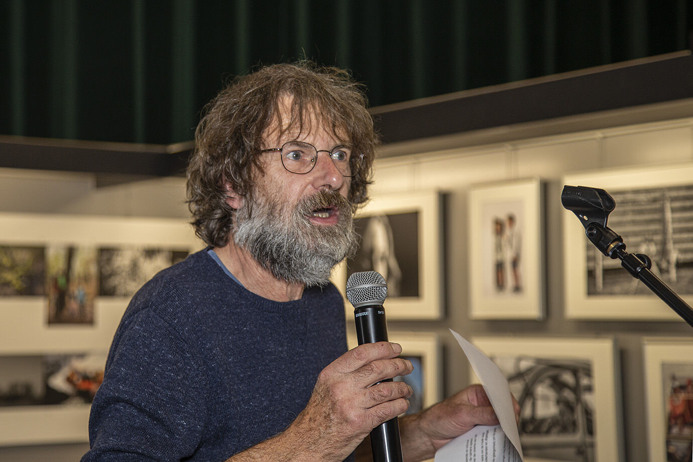 Traditioneel waren er de toespraken, natuurlijk vanwege onze voorzitter Walter, van Guy van de Perre als schepen van cultuur van de gemeente Kasterlee en van Cois Veldeman vanwege de Olense Kartoenale en even traditioneel werden ook weer verschillende prijzen uitgereikt. Dat ik voor mijn AV-reeks over Lichtaart in de prijzen viel - ik heb ondertussen het boek over de Kempense Heuvelrug al drie keer in mijn bezit - vond ik bijzonder leuk natuurlijk, helaas heb ik daar zelf geen foto van, maar dit beeld van een gedreven pratende Cois Veldeman dat ik kon scoren vond ik wel erg sprekend.