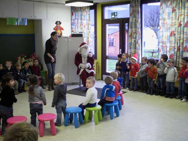 Op dinsdag 6 december was hij daar dan eindelijk. Sinterklaas kwam samen met zwarte piet naar onze school. En hij bracht hele mooie en leuke cadeautjes mee voor in de klas. Onze poppenhoek kon worden opgefrist met nieuwe spulletjes, er waren ook auto's bij en dan nog enkele nieuwe games voor in onze spelletjehoek. Wat waren we blij en enthousiast met zijn bezoekje, kijk maar eens naar de kiekjes!