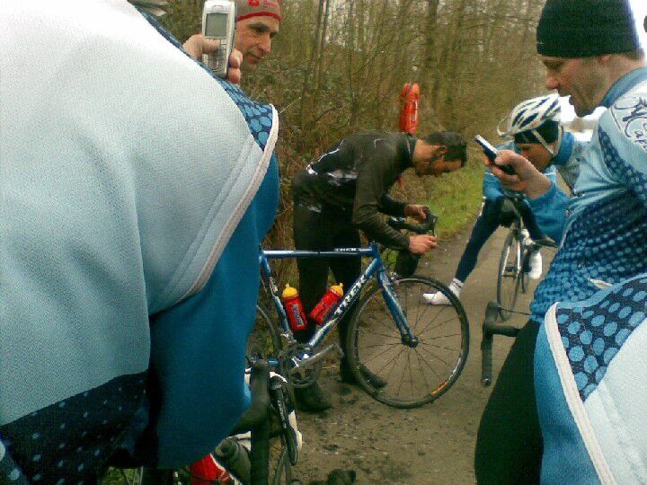 Hallo... we zin hier weere ze... Deze week was heeft wat meer inhoud dan de vorige weken. Na een anderhalve week ingebouwde rust wat het lopen betreft, zou ik maandag een kort een test doen mbt tot de rechterknie. Eigenaardig maar waar, viel deze 4 km heel goed mee. Geen spoor van die pijn meer te herkennen, weliswaar wel nog een pak schrik. Good sign...??? Dinsdagmiddag tijdens mijn middagpauze een 7-tal km gelopen in een 35 min. Op het laatste voelde ik iets, maar niets om me zorgen in te maken. Dinsdagavond nog een zwemtraining meegepikt in Heule met KTDC (2.4 km). Woensdag heb ik een 45 min. gefietst op mijn rollen, saai maar het moest er ne keer van komen. Donderdag ben ik gaan lopen met RTL en na 2 km was het weeral van da. Tijdens de afdaling van een brug kwam de pijn weer opzetten. Dus maar beginnen versnellen om een soepelere tred te vinden, en zo minderde die knagende, brandende pijn in mijn knie. Ik was er een beetje de kop van in.... Niks aan het gewricht, niks aan de spieren volgens de echo, maar toch die helse pijn... Vrijdag had ik een halve dag verlof, en ben ik eens naar Lauwers sport getrokken om te zien of het niet aan mijn nieuwe shoes lag. Het zelfde type als normaal, maar de PRO Grid 5. De pijn is opgekomen sinds ik met deze loop. Je zou in alles gaan geloven. Daar kwamen we tot het besluit van eens te lopen met mijn oud paar, en dit deed ik dan ook vandaag (lees:zondag). Zaterdag fietstraining met KTDC - een 90-tal km (kortrijk - avelgem - ronse - richting doornik - en terug via een paar parochies dat ik nog nooit van hoorde... . Het is een plezante bende, maar vooral goed getrainde bende. Normaliter ligt het tempo op zaterdag ca rond 27 km/u. Gisteren was het bijna 29, en voor mijn eerste echt lange duurrit was het op het laatste toch eventjes tanden bijten... Ik werd langs de Leieboorden, waar ik een draai om mijn oren kreeg, goed uit de wind gezet door Erik en Stefaan, waarvoor dank ! Ook was het tijdens de rit even schrikken toen "Patje" tegen de vlakte ging. Gelukkiglijk viel hij een zachte modderpoel, met de gekende gevolgen, zie foto in bijlage.... Was eventjes een lachen geblazen, niettemin de val een stuk erger kon zijn... Hier waren de goden ons toch wel goed gezind. Ik hoop dat P. geen last heeft van iets...meestal smijt de pijn wel ergens uit achterna... In de vooravond was een zwemtraining gepland te Wevelgem. 2.7 km in uurtje was pittig - kruidig geladen. Heb me wel een beetje verstopt, want was nogal slaperig aan te training begonnen... Deze morgen heb ik dan een looptest gedaan met mijn oude sloefkes, en het viel heel goed mee. Ik voelde wel nog iets, maar niet noemenswaardig. Ik zal de stretching die ik werd voorgetoond door Lieven en Frans, met hart en ziel opvolgen, en hopelijk kunnen we ons vanaf nu meer gaan baseren op ons lopen, dit zonder het zwemmen en fietsen te benadelen. Ik hou jullie op de hoogte.... Greetz and a lot of funny sport hours.... C.