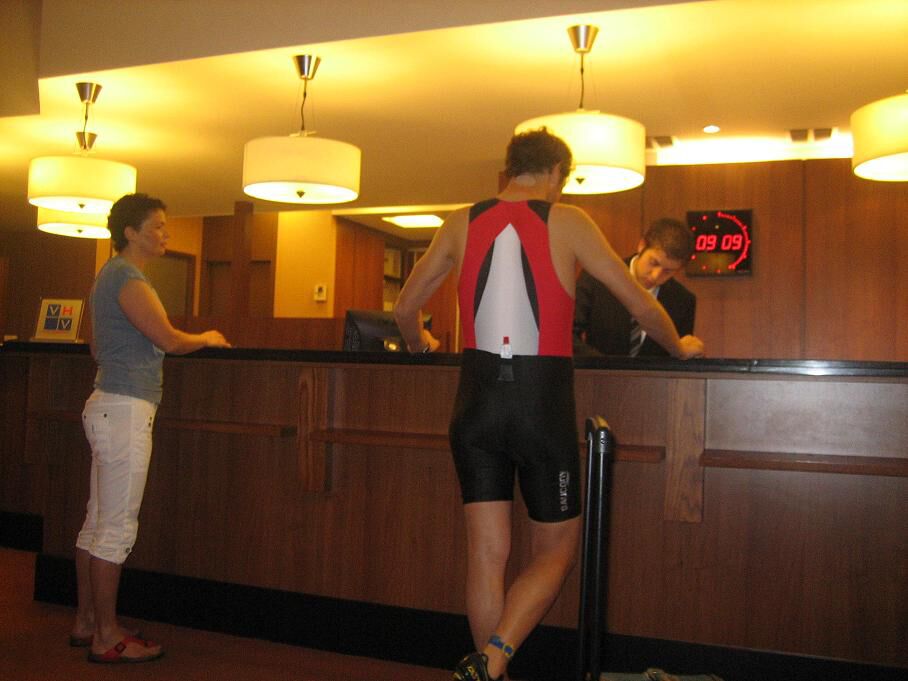 Hallo, ik heb mijn eerste triatlonervaring op zak, en wat voor één... De 1/2 triatlon van Antwerpen is ééntje om in te kaderen...Er gebeurde van alles. Ik had dit echt niet zo durven verwachten, dit hoe zo een wedstrijd zoals zijn gangetje vinden kan. Hier een verslagje... foto's volgen binnenkort, en het zijn er toch wel heel wat. Zaterdag bij onze aankomst, en na het inchecken in het hotel, bezochten we het secretariaat dit in Café Local te Antwerpen. Eens alle documenten in bezit, gingen we nog eens wat parcourskennis gaan op doen, maw waar zwemmen, waar de wissels, enz... Eén ding was meteen duidelijk, weinig tot geen plaatsen om in de schaduw te fietsen of te lopen....behalve in de Waaslandtunnel, waar we mochten doorfietsen...