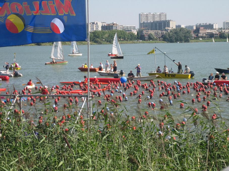 Hier reeds 1.9 km zweminspanning in de armen en de benen. Een heel leerrijke ervaring geweest. Aan het grimas te zien, waren de eerste sporen van die stamp reeds merkbaar.