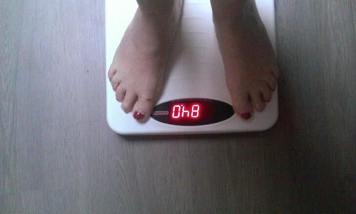Ik heb besloten om mij maar één keer per week te wegen, als ik afval zal ik dat wel aan mijn kleren voelen. Dus ik weeg me op maandag en zet de weegschaal onder het bed zodat ik niet in de verleiding kom.