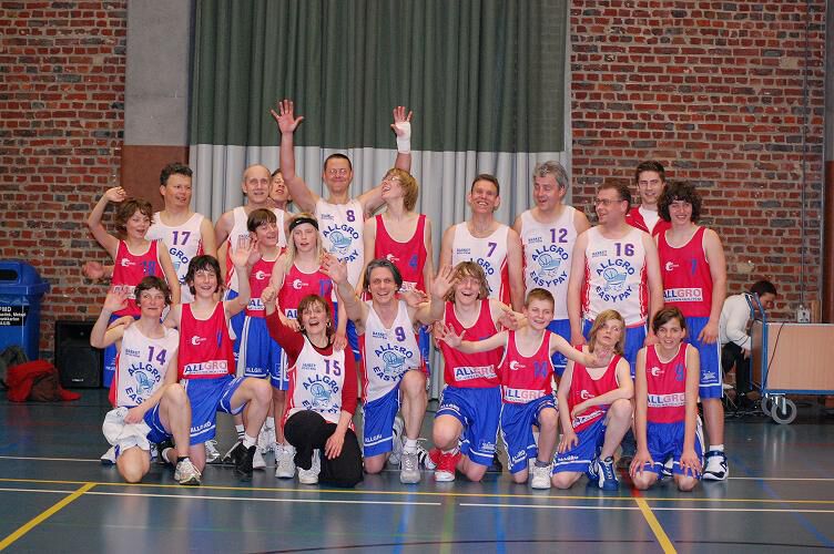 Ward roept één voor één zijn basisspelers terug . alle spelers krijgen telkens een geweldig applaus van onze supporters. Op een bepaald moment spelen we dan met onze drie meisjes ,Aaron en Niels.Bij een rebound van Aaron spurt Niels als een pijl uit een boog weg . Aaron lanceert hem met een lange bal en Niels scoort zijn eerste korf van het seizoen. Alle spelers gaan uit de bol en vieren mee .
