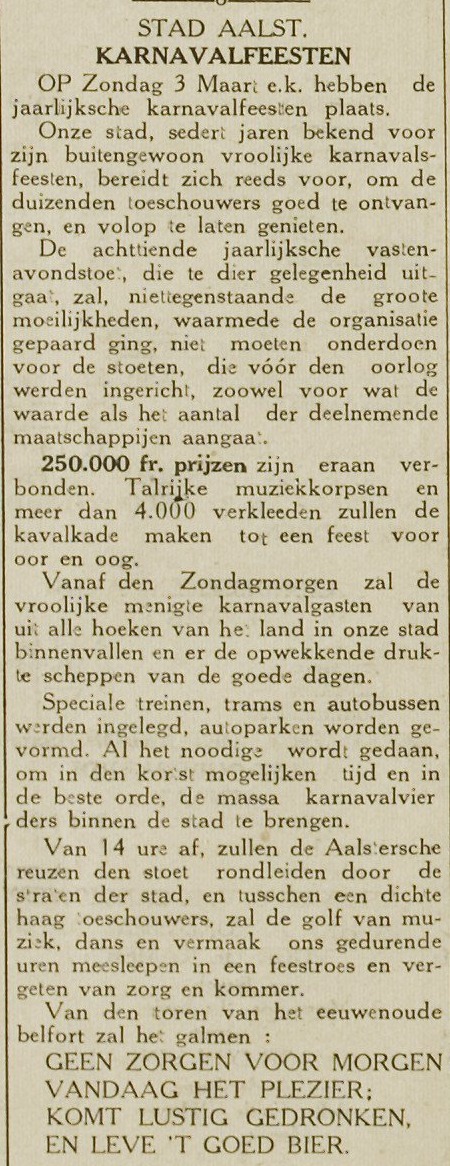 Aalst Carnaval net VOOR de Tweede Wereldoorlog... Kort erna (mei 1940) viel Duitsland ook België binnen, maar net voor de oorlog kreeg Aalst nog een Carnaval!