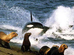Orka' s jagen vaak in groepen ze werken samen als ze een prooi vangen. Zo' n groep bestaat uit: ~ mannetjes (ook wel bullen genoemd) ~ vrouwtjes (ook wel koeien genoemd) ~ jongen (ook wel kalfjes genoemd) Het oudste vrouwtje heeft de leiding over de groep. Ze eten dieren zoals; walvissen, robben, zeehonden en walrussen.