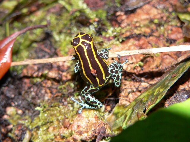 De dieren zijn waargenomen op ooghoogte op bomen maar ook tussen de bladeren op de bosbodem. Tevens zijn er waarnemingen van dieren in Heliconia's. In hetzelfde gebied worden ook D.variabilis en D.fantasticus waargenomen. Hybriden met deze twee soorten zijn echter niet waargenomen. Overdag is het tropisch warm met een temperatuur van rond de 28°C. s'Nachts zakt de temperatuur tot 20-22°C. Luchtvochtigheid is er hoog: 80 tot 100 procent.
