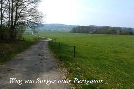 De denappels lagen overal rond van de storm die deze nacht met het omweer kwam. Met een banaan als ontbijt wij weer op weg naar Thivier en al een tijdje geleden maar de poncho kwam weer goed vanpas. In het dorp naast de bakkerij ons croissantje op eten en via Eyzerac door over de Route de Napoleon naar Negrondes. Een bar waar een paar stok oude mensen allerlei wijntjes aan het drinken waren, maar geen woord tegen elkaar spraken. Juist na 13.00 h. kwam de baruitbater vertellen dat zijn soep klaar was, dus moesten we opkrassen, leuk nie in la belle France. Sorges was onze eind bestemming