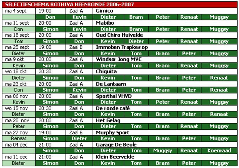 (enkel op zaterdag), Muggsy, Tom, Bram, Koenraad (?), Renaat, Dieter