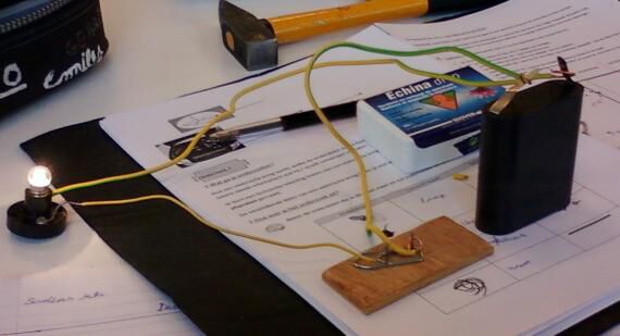 Ons groepje heeft een elektrische stroomkring gemaakt waarbij we een lampje moesten laten branden dit is zeer goed gelukt. Daarna moesten we ook de stroomkring tekenen.