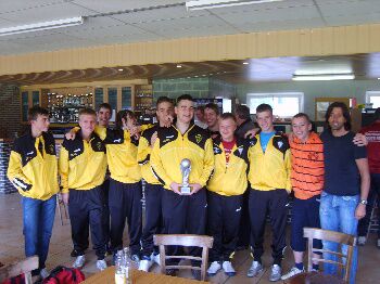 foto van links naar rechts : Bram , Steven , Kevin , Sam , David , Glen , Nick , Tim , Davie , Samuel , De trainer :Van Mieghem Patrick