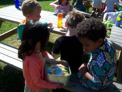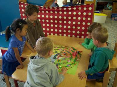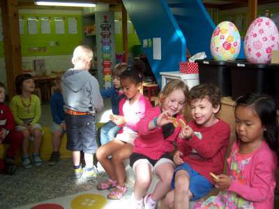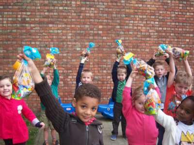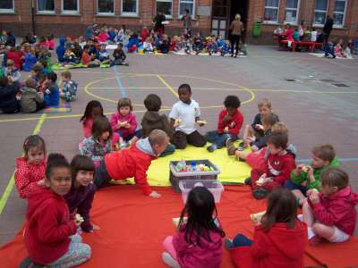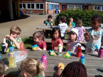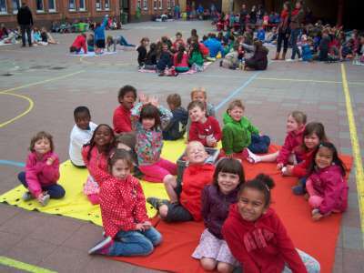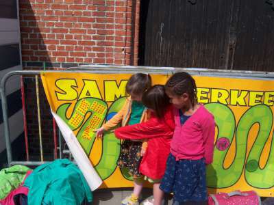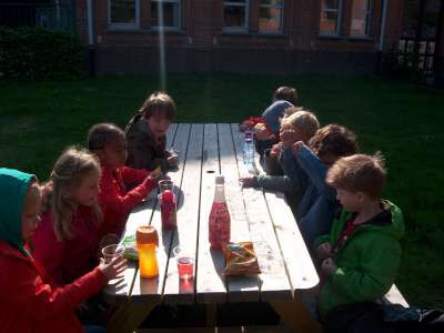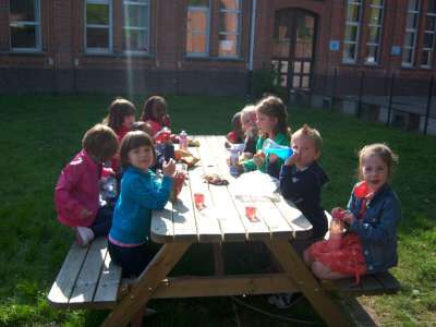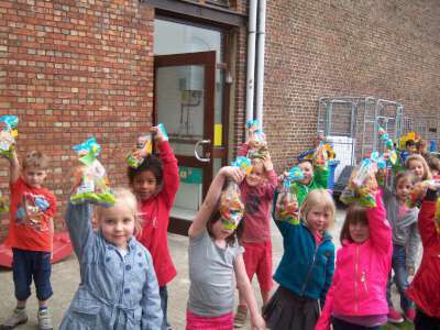 De laatste week voor de vakantie, werkten we rond het thema "Pasen" in de klas... Er viel tijdens deze week nog een heleboel te beleven! We gingen verder aan de slag met onze paasmandjes én we namen afscheid van onze kuikenvriendjes die opnieuw naar de kinderboerderij gingen. We maakten aprilvisjes, waarmee we iedereen konden 'foppen', we keken naar een toneeltje van 'Huub & Tuusje' én we vierden ook nog 2 keer feest voor onze jarigen in de klas! Alsof dat nog niet genoeg was gingen we samen met de kleuters van K3A én K3B op zoek naar paaseitjes in de tuin én we sloten de week af met een heuse 'vastenpicknick' waaraan onze hele school deelnam! Tijdens deze picknick kregen we dan ook nog eens 'hoog bezoek' van Meneer de burgemeester én de papa en tante van Dora, die Niel sinds enkele weken de titel van "slimste gemeente" hebben bezorgd! Nogmaals een dikke proficiat met de behaalde overwinning!!