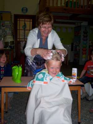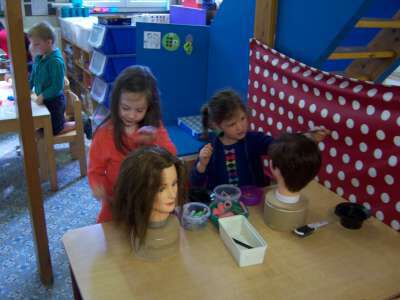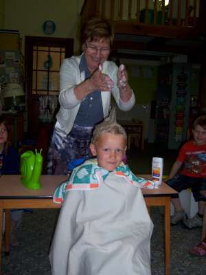 De dagen daarna gingen we zelf aan de slag! Haren knippen in het kapsalon, krulletjes leggen bij de kapperspoppen, onze baard scheren, ... Het was weer reuze leuk!!
