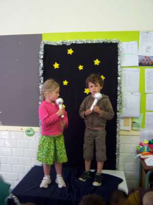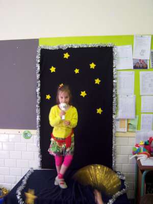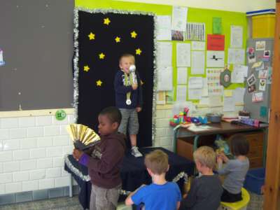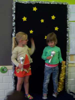 Het werd een week waarin onze kleuters naar hartenlust konden zingen, dansen, springen en nog véél meer! Het podium in onze klas had dan ook succes!! :)