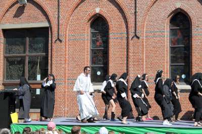Wij dansen met onze klas op het liedje 'aan de Congo stroom' van Radio Oorwoud. Verkleed als bonobo's zullen we de gekste kuren uithalen op het podium!