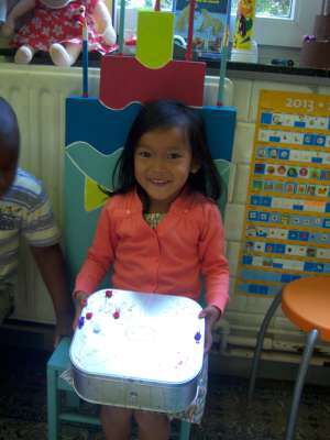 Vrijdag was het alweer feest in onze klas! Gianna werd 5 jaar! Na de paasvakantie brengt Gianna nog iets lekkers mee om te smullen! Mmmh!! Gelukkige verjaardag Gianna!