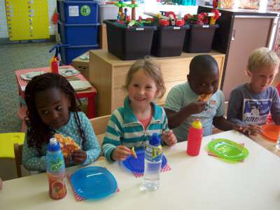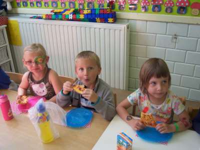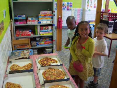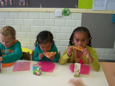 En natuurlijk hét hoogtepunt van de week: PIZZA'S SMULLEN IN DE KLAS!! Mmmmh!! :)