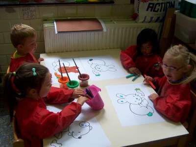 Samen gingen we op zoek en deden we er alles aan om hem te vinden. We maakten tekeningen voor Nellie én posters van Cezar, we zochten in elk hoekje van onze klas, we gingen ook in de andere klasjes kijken, in de tuin, ... en UITEINDELIJK vonden we hem terug! Hij was heel de tijd in het klasje bij Juf Greet geweest en miste Nellie ook verschrikkelijk! Onze 2 dikke vrienden waren zo blij dat ze elkaar gevonden hadden!! En wij ook!! :) Want ook wij vonden leuke nieuwe vriendjes van K2B! Samen met de kindjes van Juf Greet deden we dan ook nog een 'vriendendansje' in de speelzaal om te vieren dat Nellie én Cezar elkaar teruggevonden hadden.
