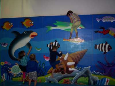We konden ook zelf visjes vangen in onze klas, visjes plakken in de visbokaal, visjes tekenen met natte krijtjes én nog veel meer! We maakten ook "bubbelvisjes": wat scheerschuim en oranje verf en dan wrijven maar over de bubbelfolie!! Dolle pret voor onze kleuters!! :) Daarnaast speelden we ook een spelletje in de kring waarbij we de visjes met een belletje moesten terugvinden... dat was best moeilijk!