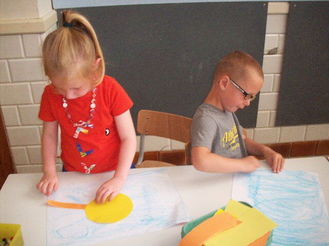 Twee leerlingen van het zesde leerjaar kwamen nog eens proeven hoe fijn het is in de kleuterklas. Want na dit schooljaar zitten Ijou en Sofia niet meer in onze school, maar in het eerste middelbaar. Succes daar !!