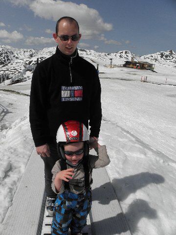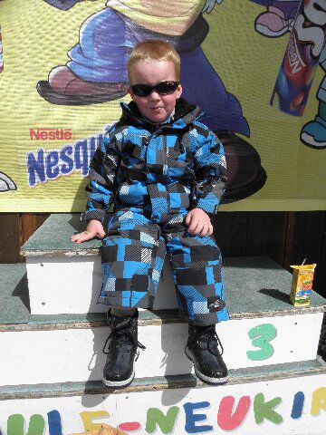 En onze kleine held, in het midden van de belangstelling, maar skiën is dus al aardig gelukt...