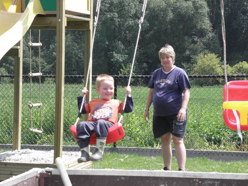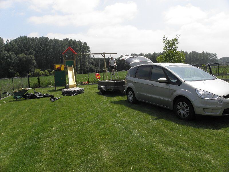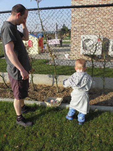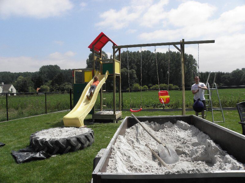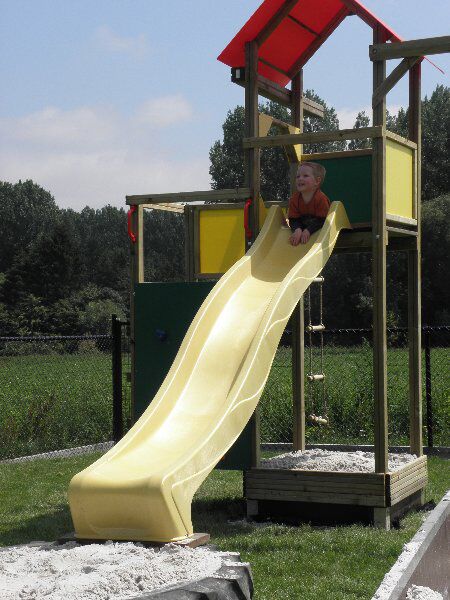 Voor Siebes verjaardag, en andere feesten spaarden we al regelmatig centjes. Ook andere sponsors, zoals de grootouders deelden mee in de kosten. Hiervoor hebben we nu een echt klimrek geïnstalleerd! Een glijbaan, schommel, klimmuur, zandbak... Kortom alles wat een 4-jarige kan wensen om te ravotten. Na 2 dagen zwoegen en zweten, plannen lezen en schroeven boren, gaten graven en beton gieten (dannkjewel Opa en papa!) is Siebe zijn klimparadijs klaar! Dit is onze investering in zijn verjaardag, waarvan hij nu de hele vakantie al van kan genieten! Hij is er niet van af te houden! Dus wie wil komen helpen duwen, mag steeds inschrijven!
