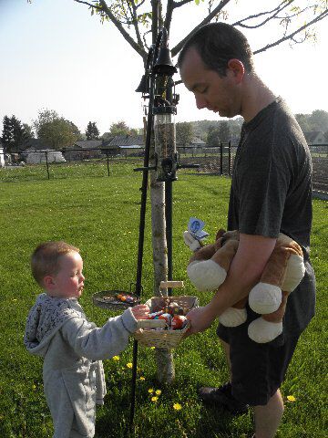 Om lang te kunnen genieten van zijn paascadeau, en omdat papa tijdens paasweekend nachtdiensten heeft, heeft Siebe de paashaas al een beetje vroeger besteld. En donderdagochtend was het dus even verschieten toen er vanalles in de tuin lag! Eitjes rapen, ondertussen al een groot deel poeven en ontdekken dat de paashaas zijn belofte had gehouden: een echte grote jongensfiets!