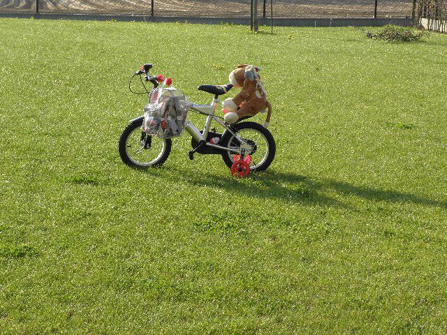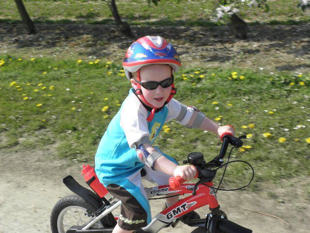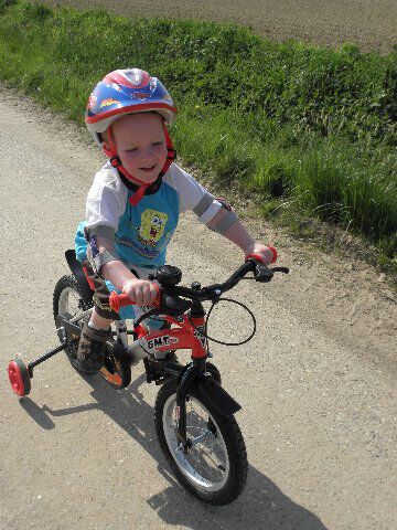 De fiets is nog wat groot, maar dan komen we langer toe. Dus laten we de steunwieltjes nog even staan. Maar uiteraard moest de fiets na het ontbijt van paaseitjes en chocolade, onmiddellijk uitgetest worden! En de eerste fietsende meters gingen zo goed, dat Siebe maar onmiddellijk door gefietst is naar Opa en Moeke! Mama met de wagen er achteraan, maar uiteindelijk was er geen bezemwagen nodig! Onze kadee kan al aardig fietsen en papa heeft het geweten, want hij kon naast de fiets al lopend volgen!