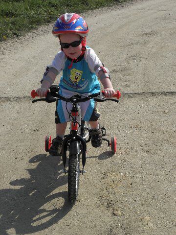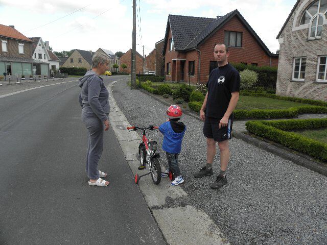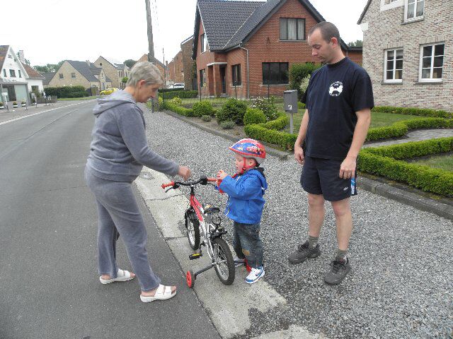 Dan ook nog eens fietsen tot bij Oma! Al is onze heer geen doorzetter, want na elke 10 meter denkt hij te moeten stoppen, maar hij is er weer geraakt.