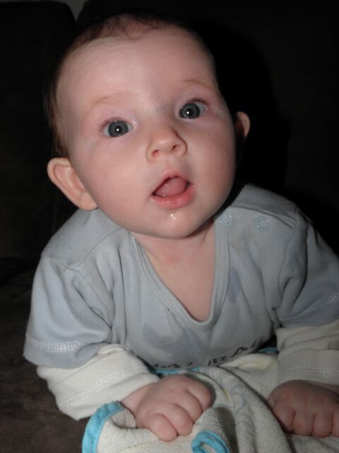 We wisten het voorheen al, de tijd gaat erg snel. Bij Siebe was dit al te merken, maar met Svanne erbij is dat nog duidelijker. Onze kleine meid nam vandaag haar laatste borstvoedingsfles , ligt dolgraag op haar buik te glunderen naar broer, doet niets liever dan rechtop zitten, slaapt (na het ziek zijn) ijverig de nacht door , kirt en kwebbelt al evenveel als broer ... Prachtig gewoon. Vandaag, dag op dag, is ze 4 maanden! Al heel wat haren verloren, maar des te meer kilo's en centimeters gewonnen!