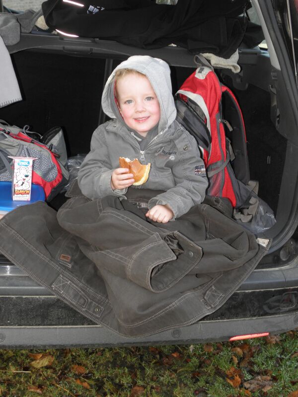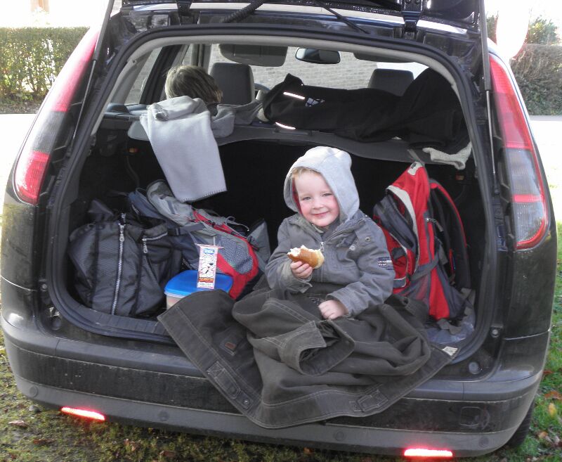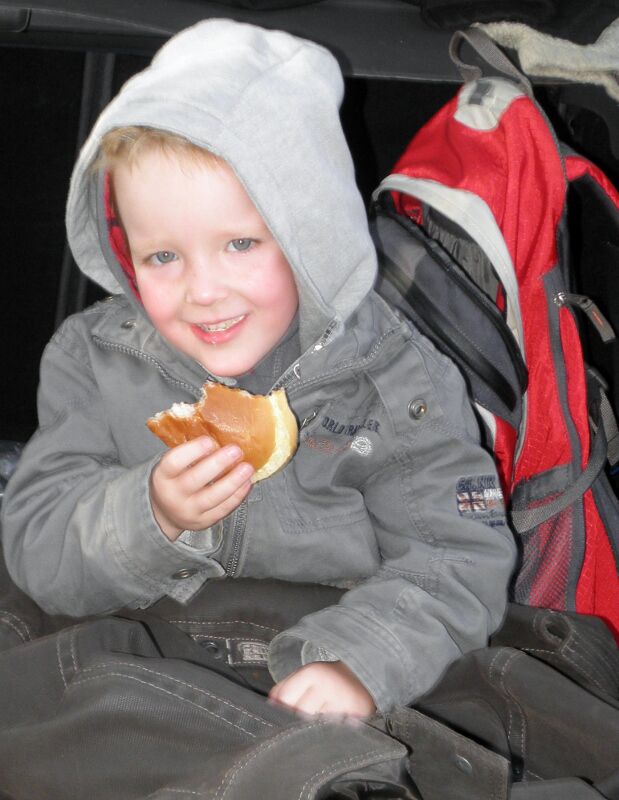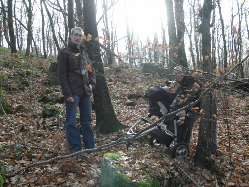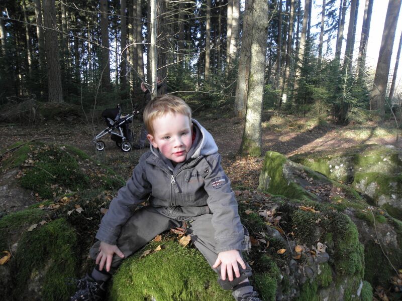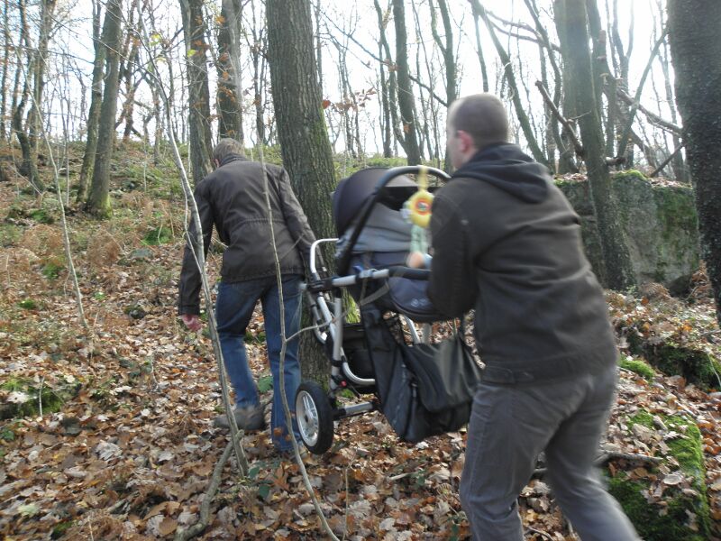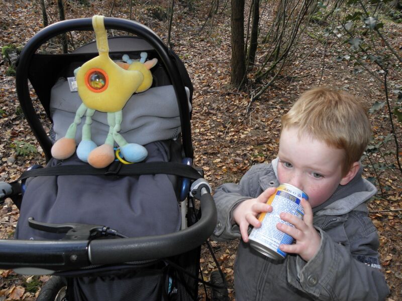 We startten met een picknick in de auto, svannes eerste koude fles , en daarna de start van wat een stevige wandeling bleek te zijn. Door heel wat foute berekeningen en miswandelen werd het zelfs voor Svanne, in de koets, een offroad trip! Ik heb er trouwens een filmpje van hoe ze, door de stilte van het bos, schaterend en lachend de omgeving opfleurt! Prachtig! (Of wou ze gewoon Bert en Bert uitlachen, want die konden de koets de berg op dragen!? ) Siebe kreeg met zijn kleine dappere voetjes 7 km te verduren! Die hij moedig uitdeed! Met voldoende koekjes, snoepjes en aquarius, kan hij alles aan! We hebben gepuft en gezweet en niet alleen uit symphatie voor Ine, die op dat moment beviel van onze jongste toekomstige geocasher!