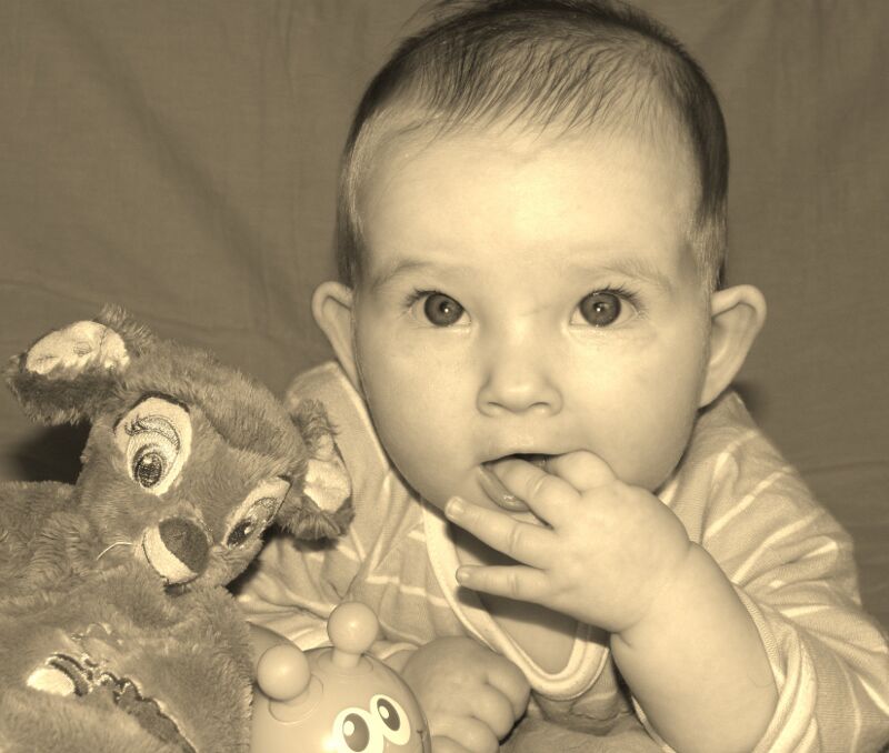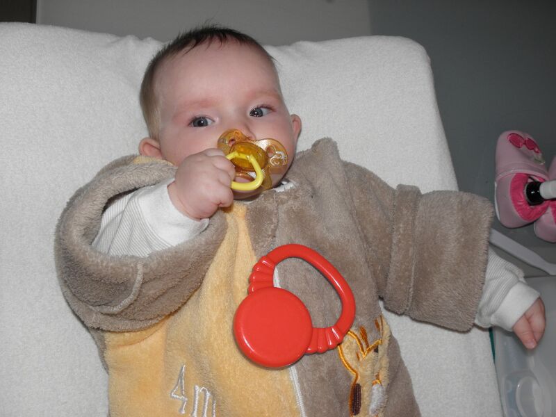 We blijven in herhaling vallen: de tijd gaat vreselijk snel. Zeker met de 2 kadees in huis. Hier foto's van Svanne, onze dame is nu 6 maanden! En ja... soms kan dat met een tut... Heeeeeel soms.... Tot ze haar duim weer ziet...