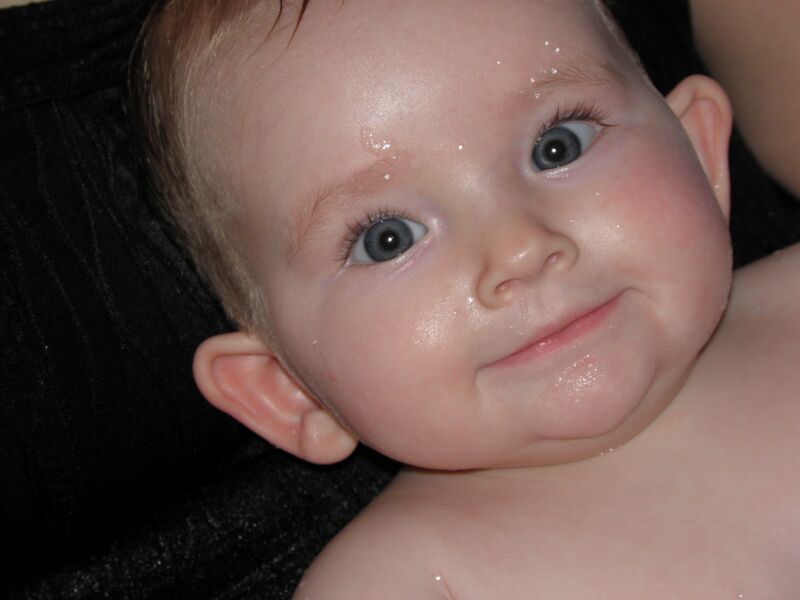 Je hebt zo van die dagen dat kleine meid grote dingen produceert in haar pamper... En als die dan niet goed toe is... Dan is de oplossing nabij: lekker warmwater in de gootsteen... Tussen de afwas, papflessen en andere keukenrommel vind je Svanne op haar best: in het water!
