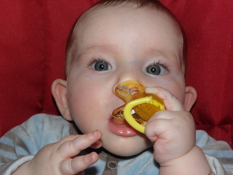 En ja hoor, soms lijkt het toch goed dat we dat duimen wat proberen te beperken en zo lang geprobeerd hebben die tut te promoten. Want soms, vooral na het eten als ze moe is, neemt onze dame ook genoegen met...een tut!