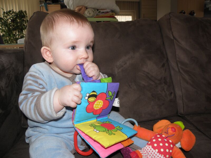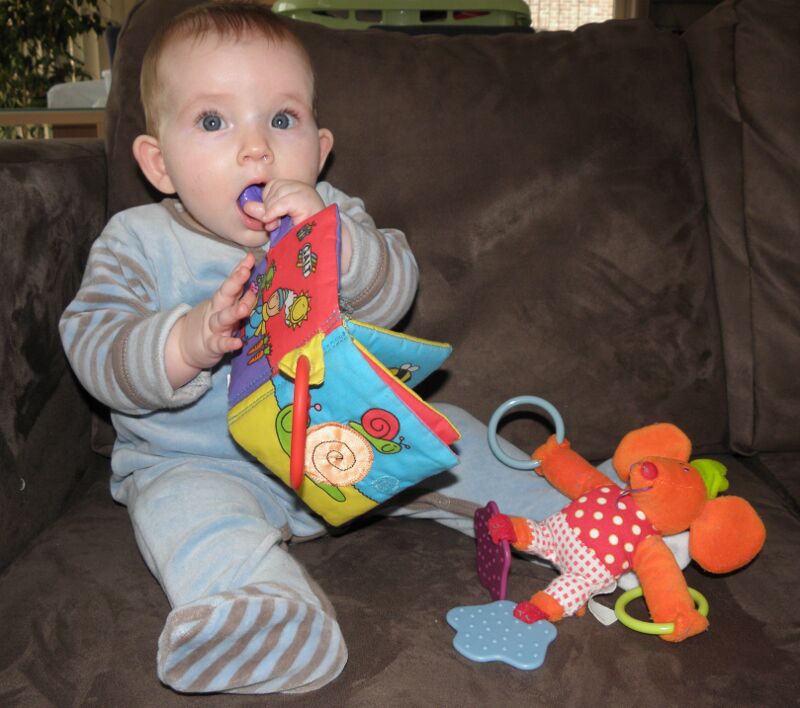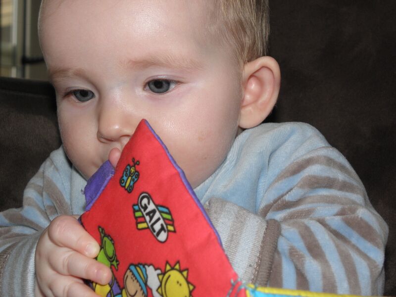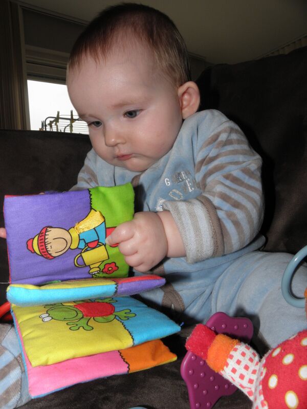 Terwijl grote broer zich braaf bezig houdt met het bouwen van dieren, waagt Svanne zich aan het "lezen" van haar eerste boekje... En zoals het hoort op 6 maanden, betekent dat ... boekjes proeven!