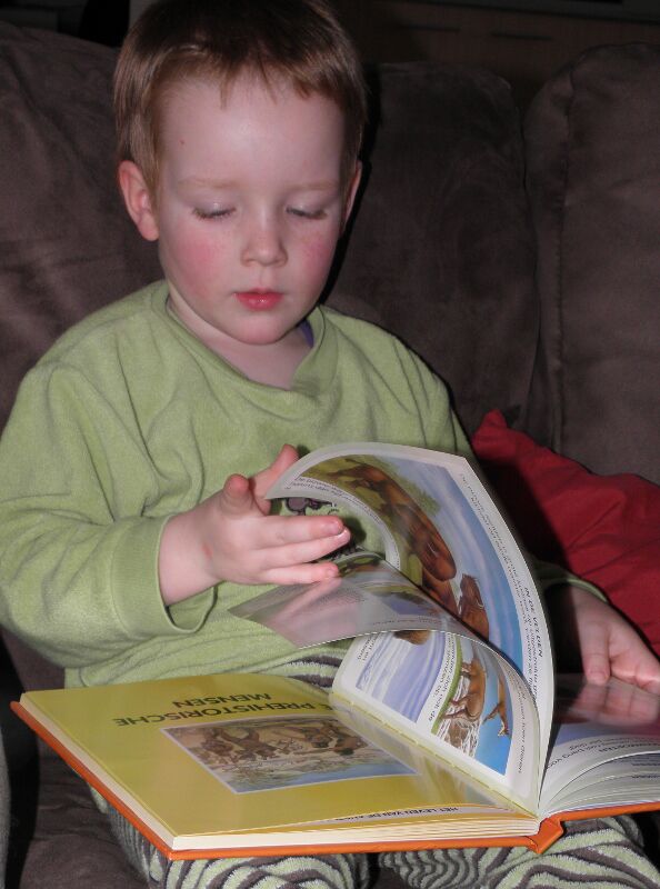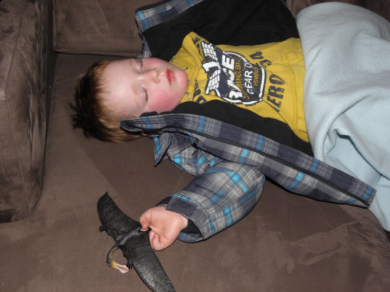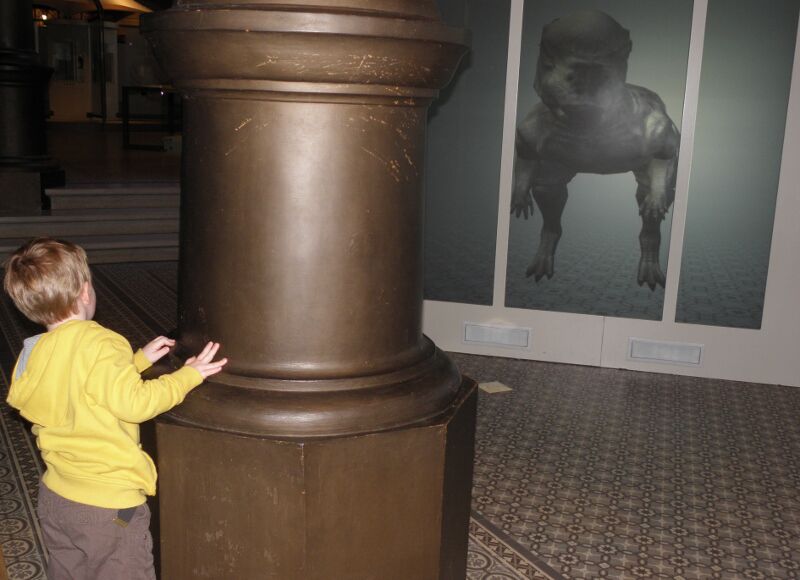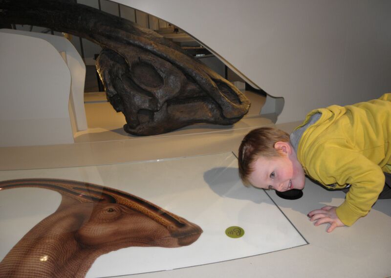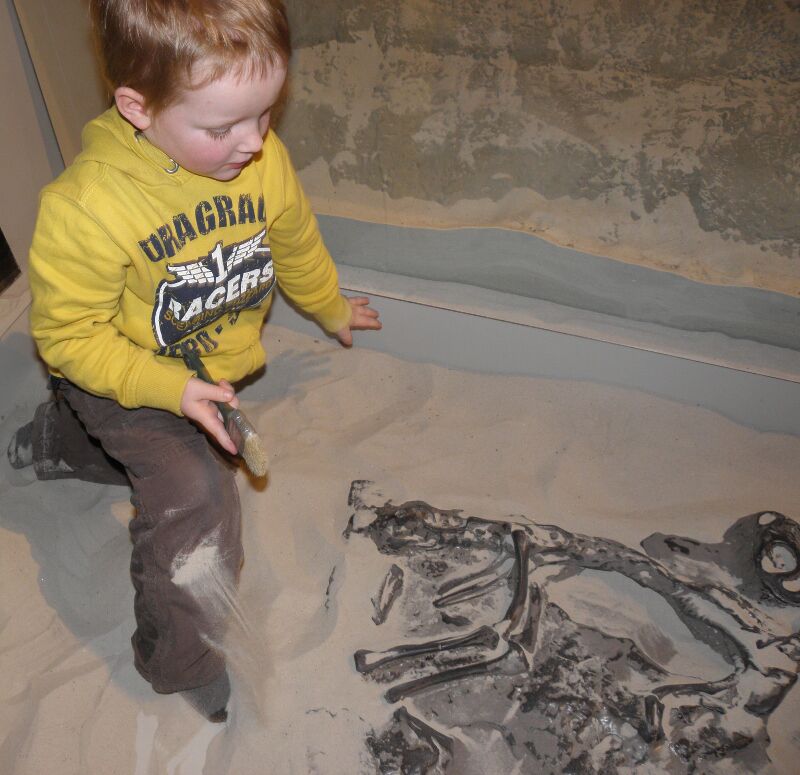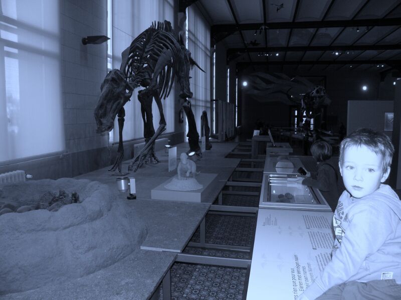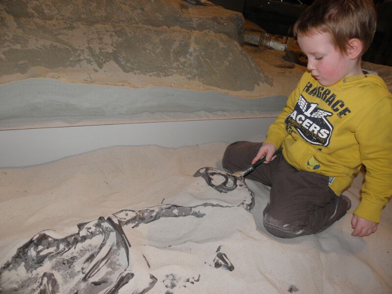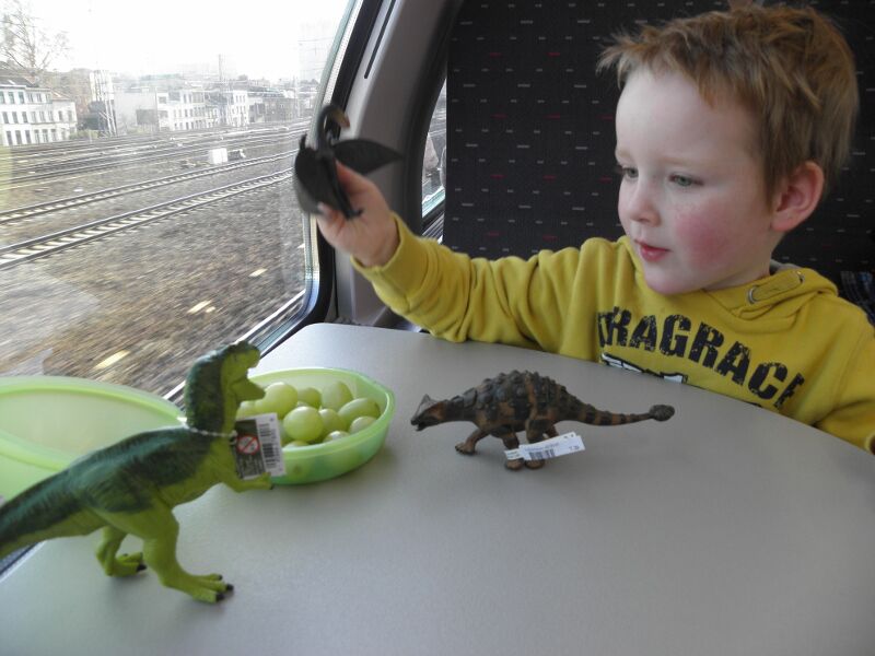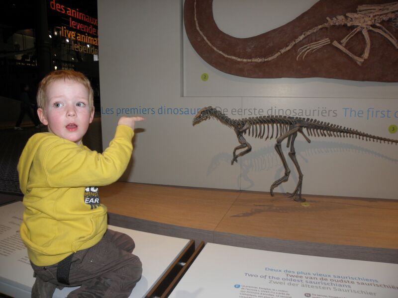 Weldra moet mama definitief terug gaan werken... Dus organiseerde ze een extra Siebe-dag. Na even zoeken, botsten we op een knap idee: Siebe en zijn nieuwsgierigheid voor Dino's...Dus in het geheim alles opgezocht over de uren van trein, de reisroute, de openingsuren, ... Het had moeten gefilmd worden! Siebe wist totaal van niets, zelfs niet toen de auto in de ochtend niet richting school maar richting Hasselt reed. (Al vroeg hij wel eens waarom mama een rugzak en hij geen boekentas bij had...) In het station aangekomen "Ha yes, we gaan met de trein naar school mama!" De trein vertrok... Boekje van de Dino's bovengehaald... Als we daar nu eens naar toe gingen... Zijn gezicht , zijn ogen , zijn stilte ... en toen zijn onstuimigheid ... (Daar ga ik nog jaren op kunnen teren!) Het was super! In het museum aangekomen dartelde hij van dino naar dino, van computer naar video, ... hij had ogen en oren te kort! Verwondering voor de beelden, verbazing voor de grootte, nieuwsgiering naar alle weetjes, soms toch bang voor wat zij zag... hij genoot met volle teugen. En dan regelmatig dat vraagje: "We gaan nog niet niaar huis he mama!?" Duizend keer vroeg hij het... Na het eten terug naar de zaal, naar de opgravingen kijken, zelf opgravingen mogen doen, uiteraard een dino gekocht (3 want hij kon niet kiezen) "En ook een dino-boek voor zus, he mama?!" En terug in de trein...In de auto in slaap gevallen, thuisgekomen in de zetel gelegd, wakker geworden maar uit zichzelf terug gaan liggen en verder geslapen ... Totaal van de kaart, maar zeker gelukkig! Dit deed ik met plezier Siebe! Ik hoop dat je dit kan blijven onthouden en meenemen voor later! Ik gun iedereen een blik achter de schermen met de foto's, maar ze geven maar een fractie weer van Siebe's plezier!