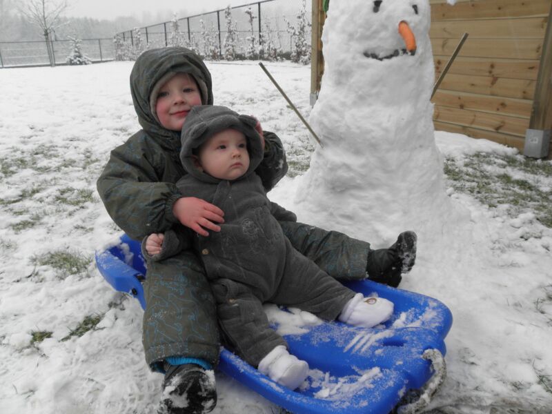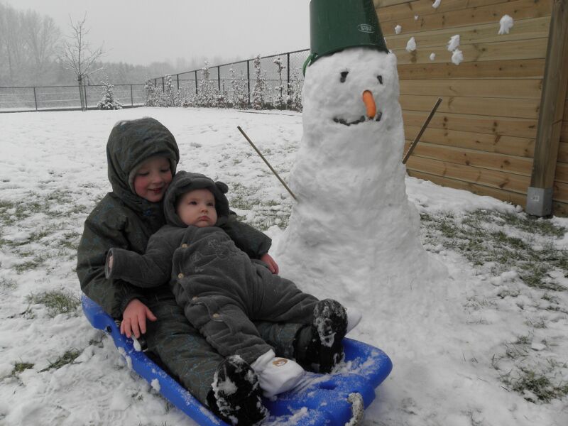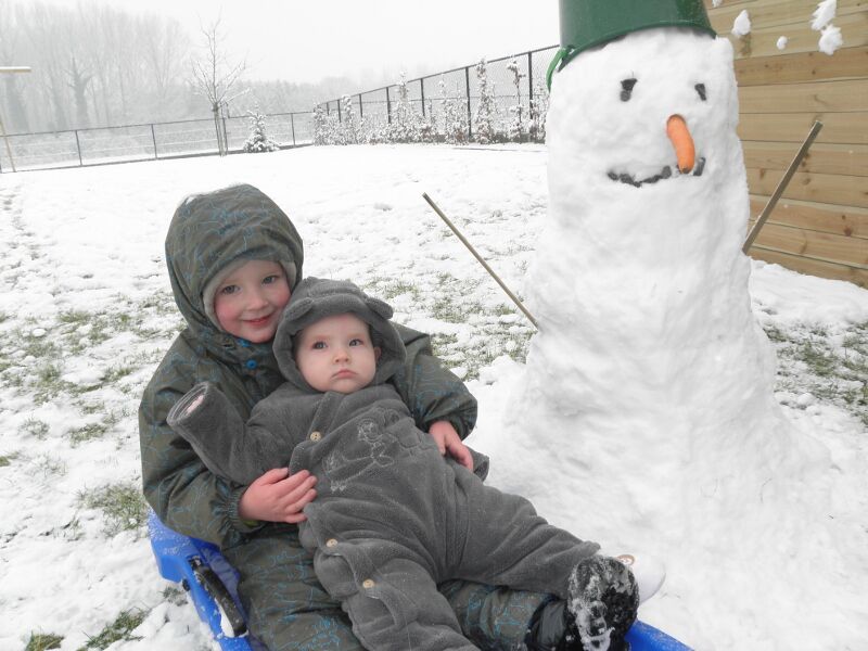 We hebben er lang op mogen wachten! Dat merken we vooral aan de kleren van Svanne, want haar sneeuwpak hadden we ruim vooraf gekocht en zit nu al aan de marge van te klein ... Sneeuw als we de rolluiken 's morgens open doen! Dus dat werd een sleetocht door de velden, een sneeuwman maken, sneeuwballen oorlog, ... Super leuk!