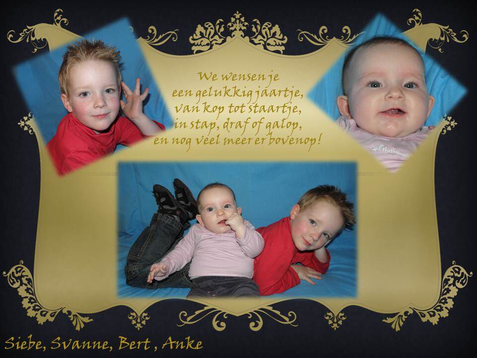 Het jaar is al weer bijna om. Een jaar met grootse dingen die voorbij zijn: Svanne kwam erbij, Siebe werd 4j, mama terug aan het werk, de carport werd gebouwd, ... en nog dingen die we al niet meer herinneren... Op naar het volgend jaar. Met hopelijk evenveel leuke dingen en minder moeilijke momenten!